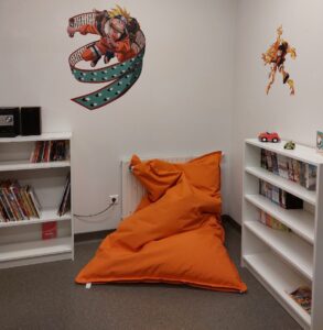 Dans cette continuité, l’association a récemment contribué à l’aménagement de la salle des ados, offrant un espace plus chaleureux et convivial. Fauteuil, étagères, mangas et stickers ont été offerts pour créer un environnement accueillant et adapté aux jeunes patients.