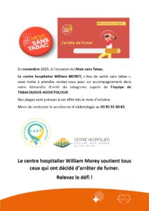 Le centre hospitalier William Morey s’associe pleinement à cette initiative en mobilisant ses équipes autour d’un objectif commun : offrir un accompagnement complet et bienveillant pour arrêter de fumer.